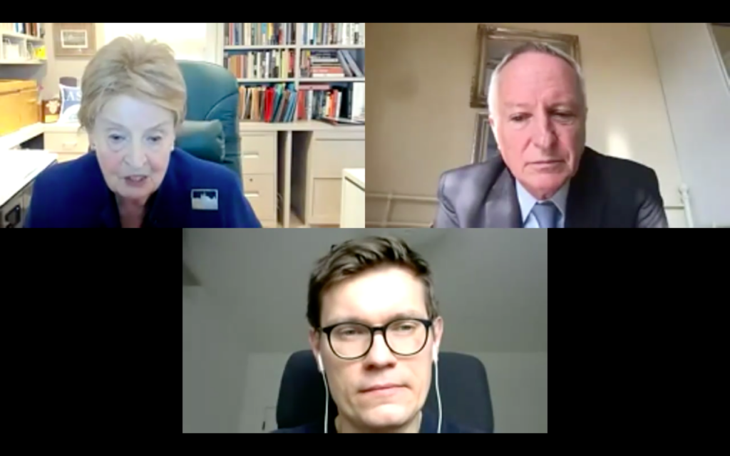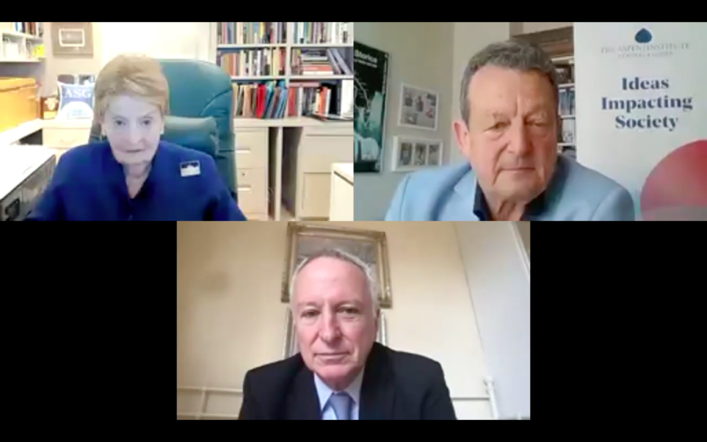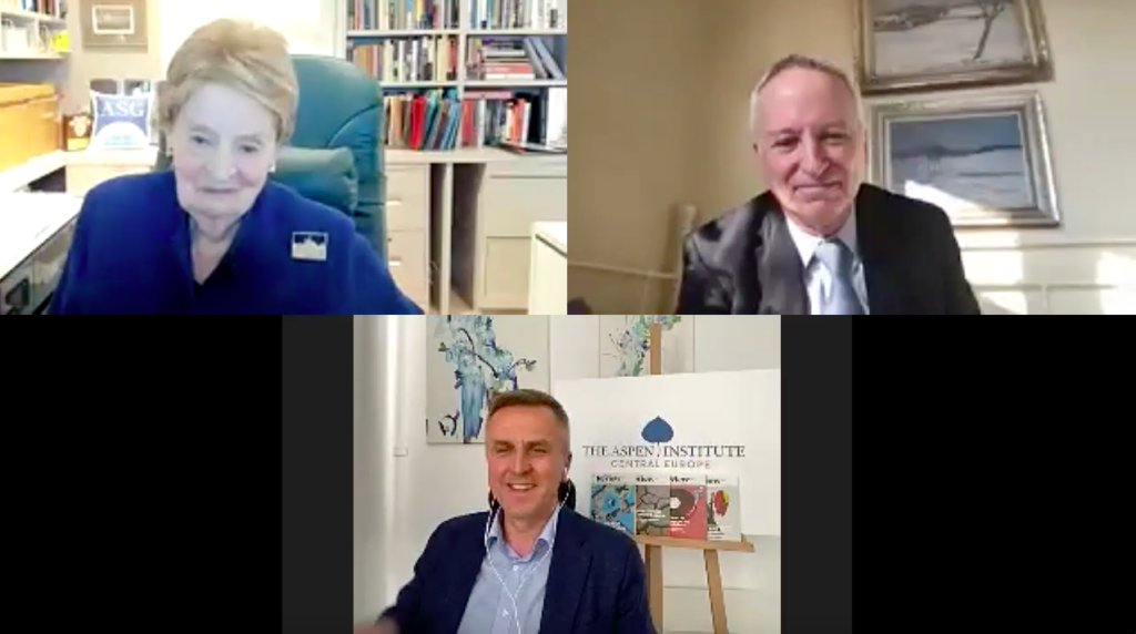 On March 24, 2021 the Aspen Institute Central Europe hosted a virtual discussion on transatlantic relations with Former US Secretary of State Madeleine K. Albright. The discussion was moderated by Cameron Munter, Senior Fellow of Atlantic Council and Fellow of the CEVRO Institut.