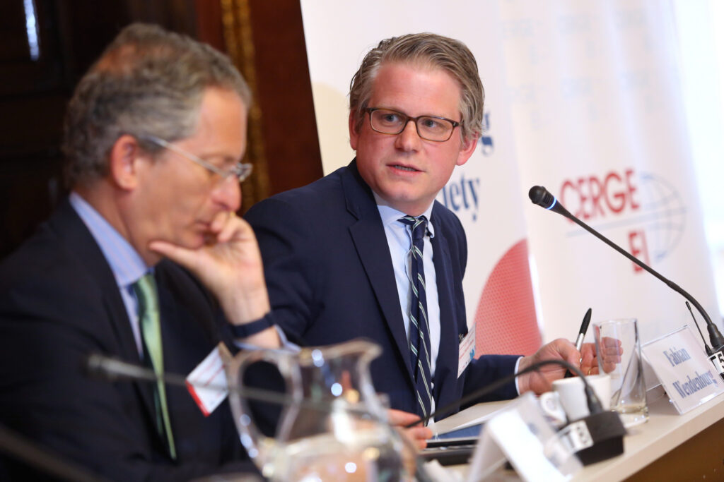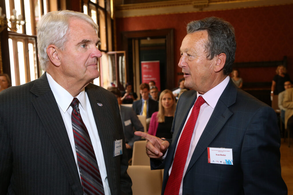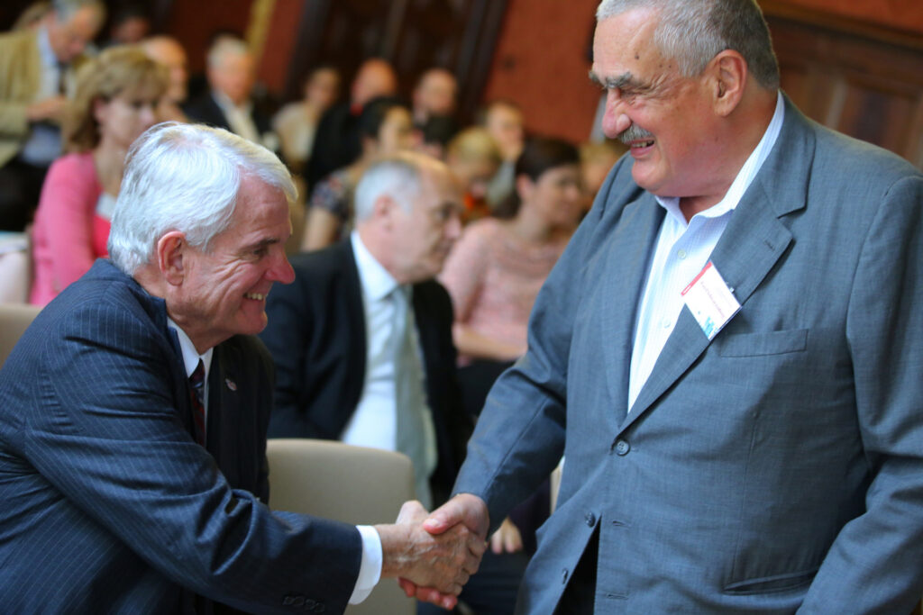 Karel Schwarzenberg, former Czech Minister of Foreign Affairs, made opening remarks questioning the possibility to succeed when bringing values to different regions or societies, referring to the examples of Central Europe in 1918 and the Middle East in 2003.